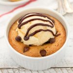 Bake at 350°F for 20 to 25 minutes or until the top of the cookie is set and the edges are browned. The baking time will vary depending on the size of your ramekin. If needed, tent with foil to prevent excess browning on the top of the cookie.