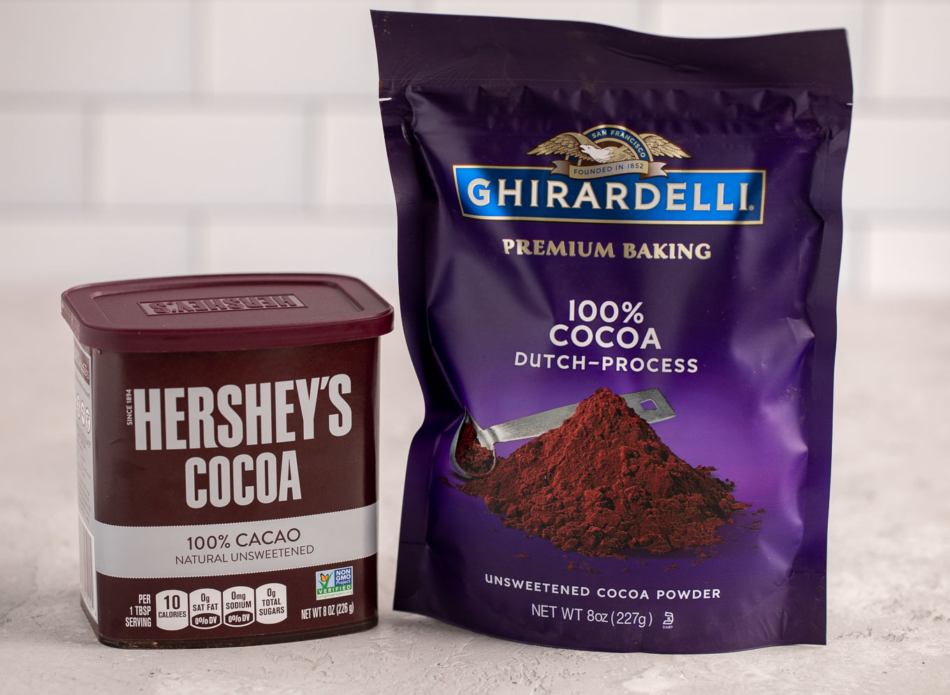 While the packaging may look similar, these two cocoa powders are not quite the same.