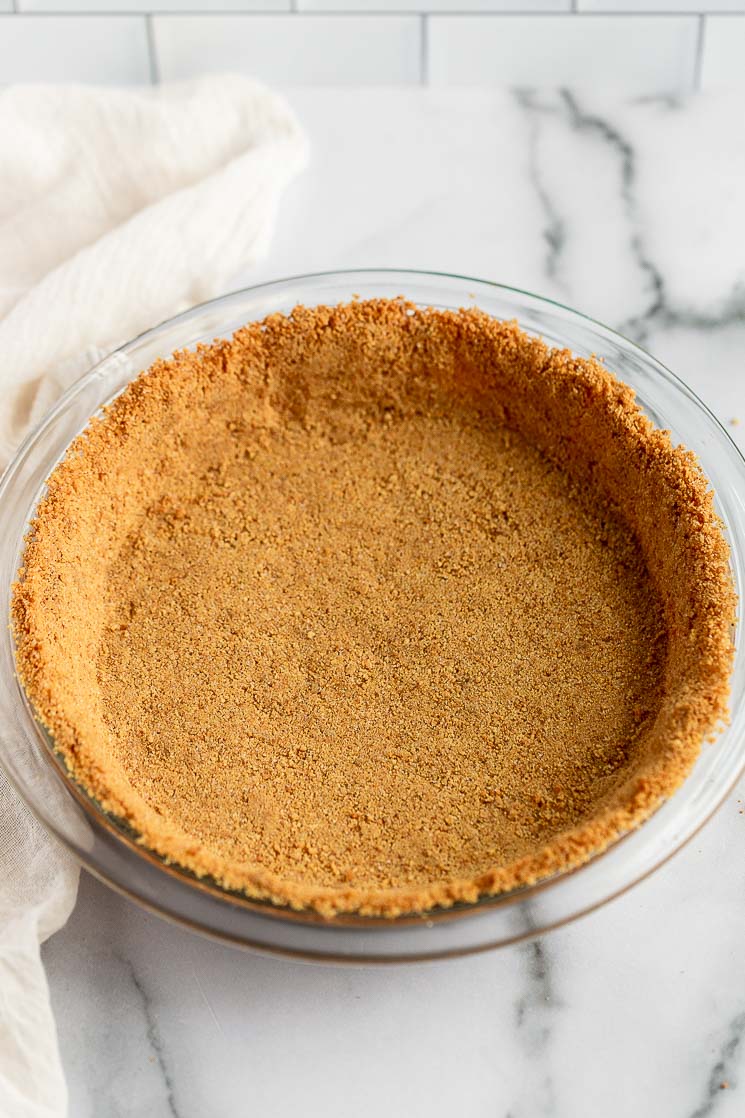 I’ve mentioned it before, but I’ve never been a fan of the store-bought graham cracker crusts. I feel like store-bought crusts are far too crumbly and it’s almost impossible to get a clean slice out of them without it falling apart.