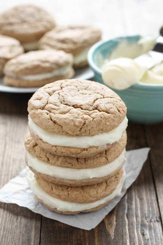 Oh my…I’ve only had Carrot Cake, but I have to tell you – these are my new favorites – because I love cookies and two sandwiched with goodness? Girl – these are so pinned!