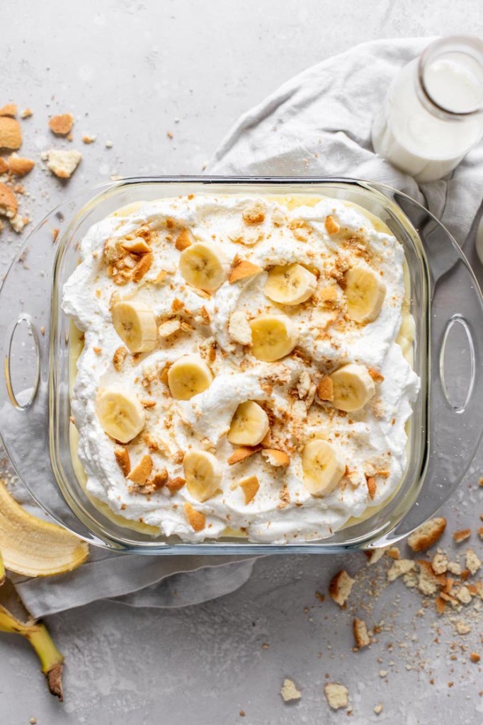 Once that’s done, all that’s left is to make the homemade whipped cream, spread it over the banana pudding, and dig in!