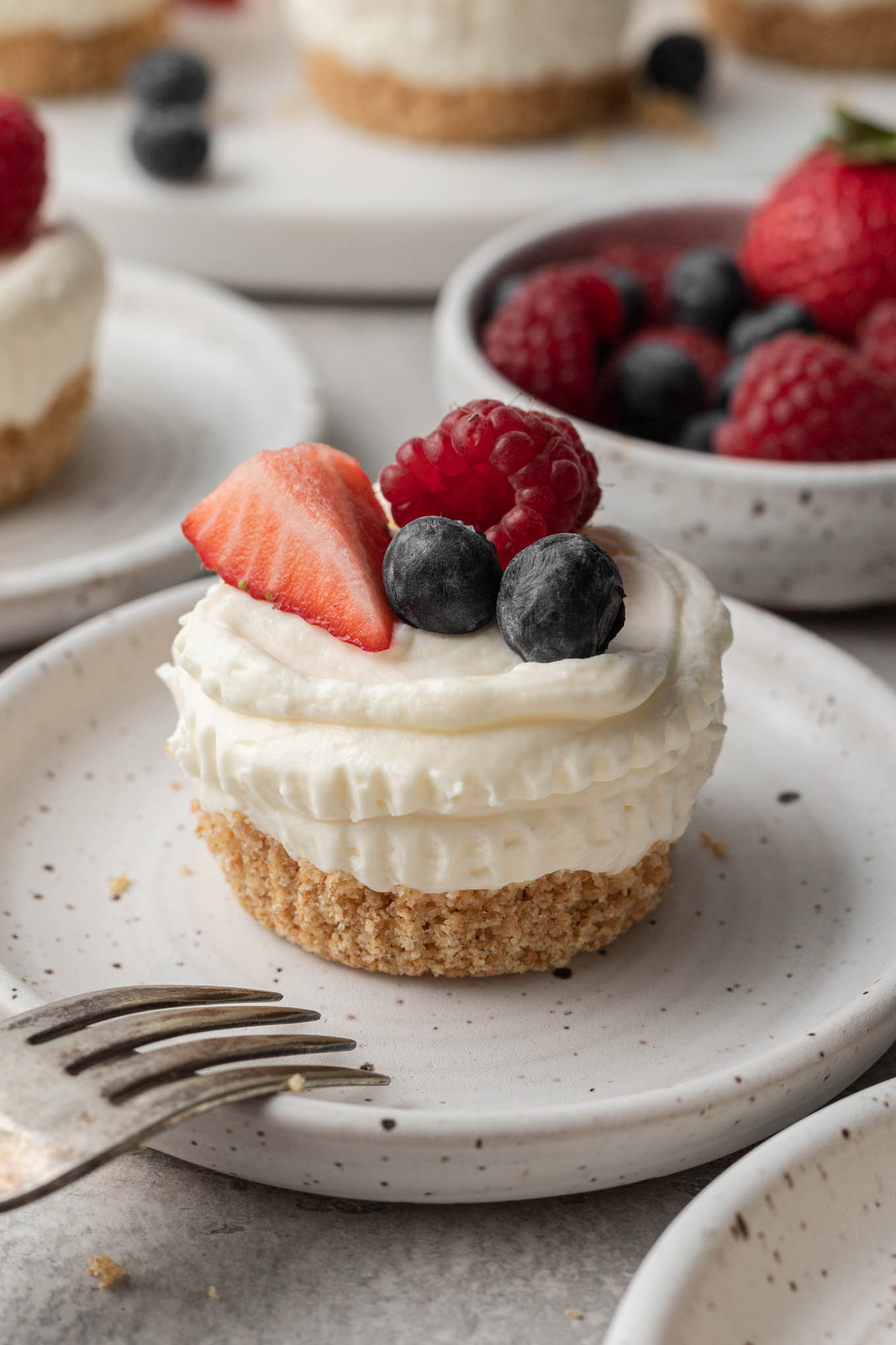I make my classic mini cheesecakes any chance I get, to rave reviews every time. Although I adore that recipe, I don’t always love having to turn on my oven during the summer months to make them.