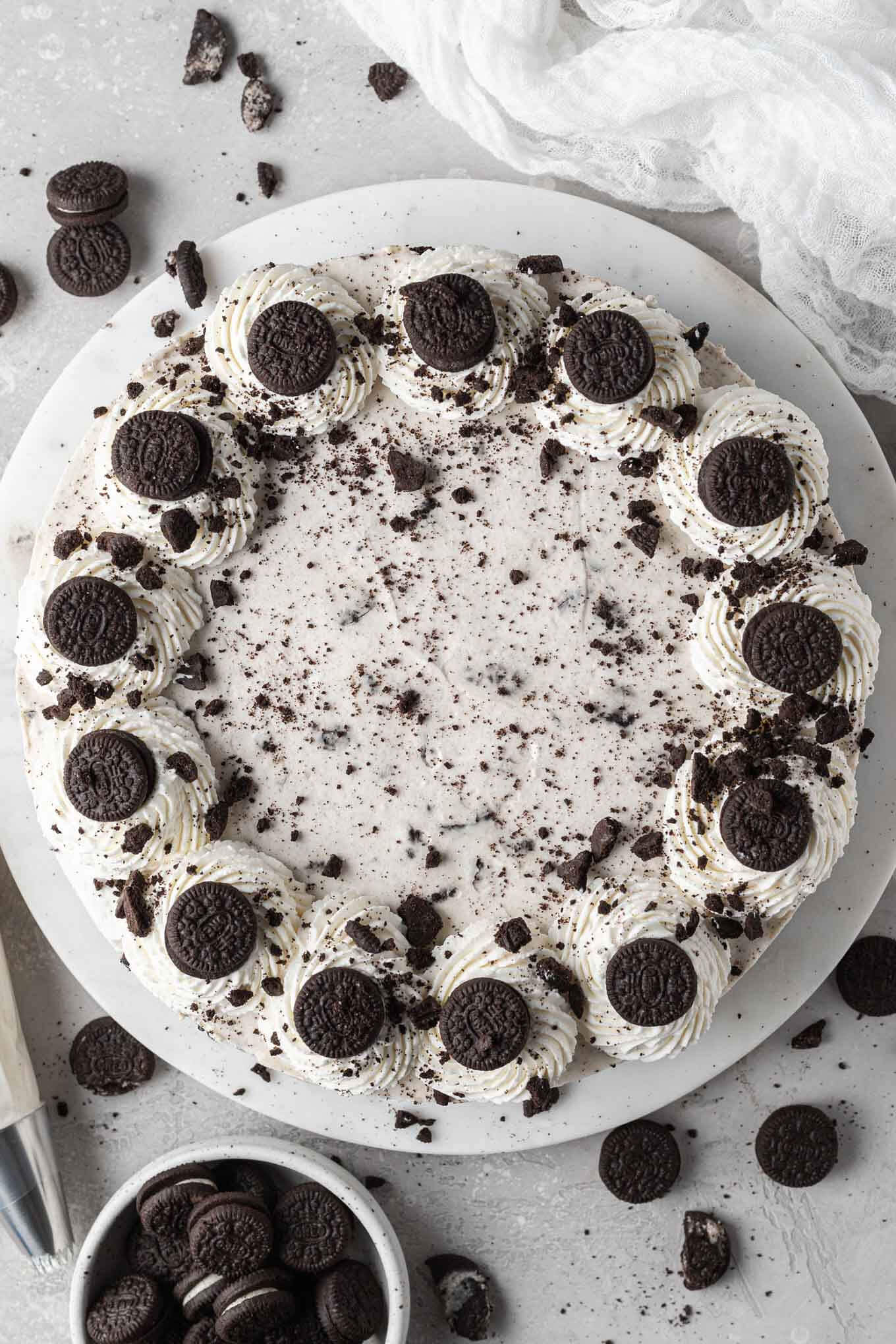 - If desired, pipe whipped cream around the edges and top with the Oreos.