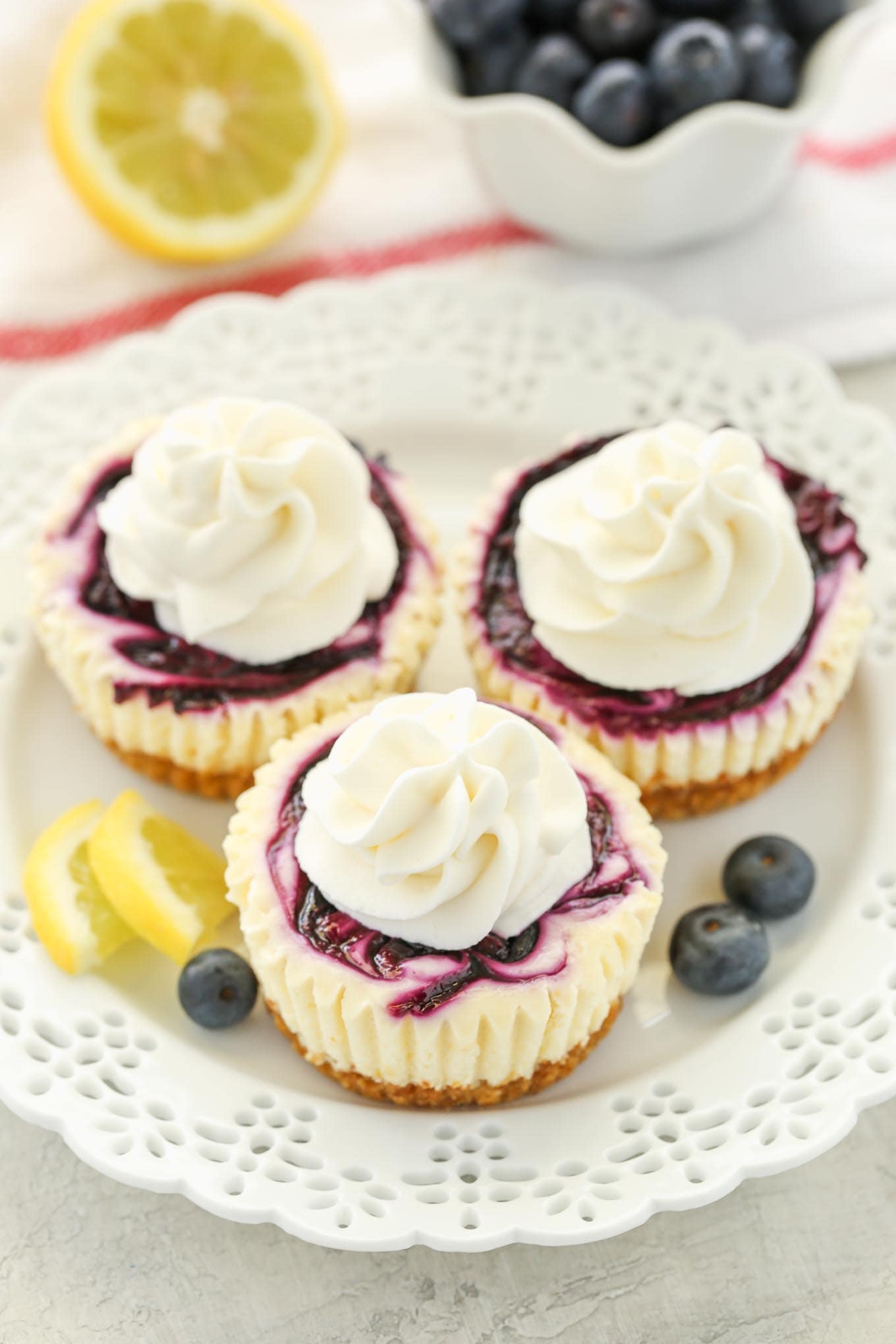You can even leave off the blueberry swirl for a regular mini lemon cheesecake or swap out the blueberries with your favorite berry!