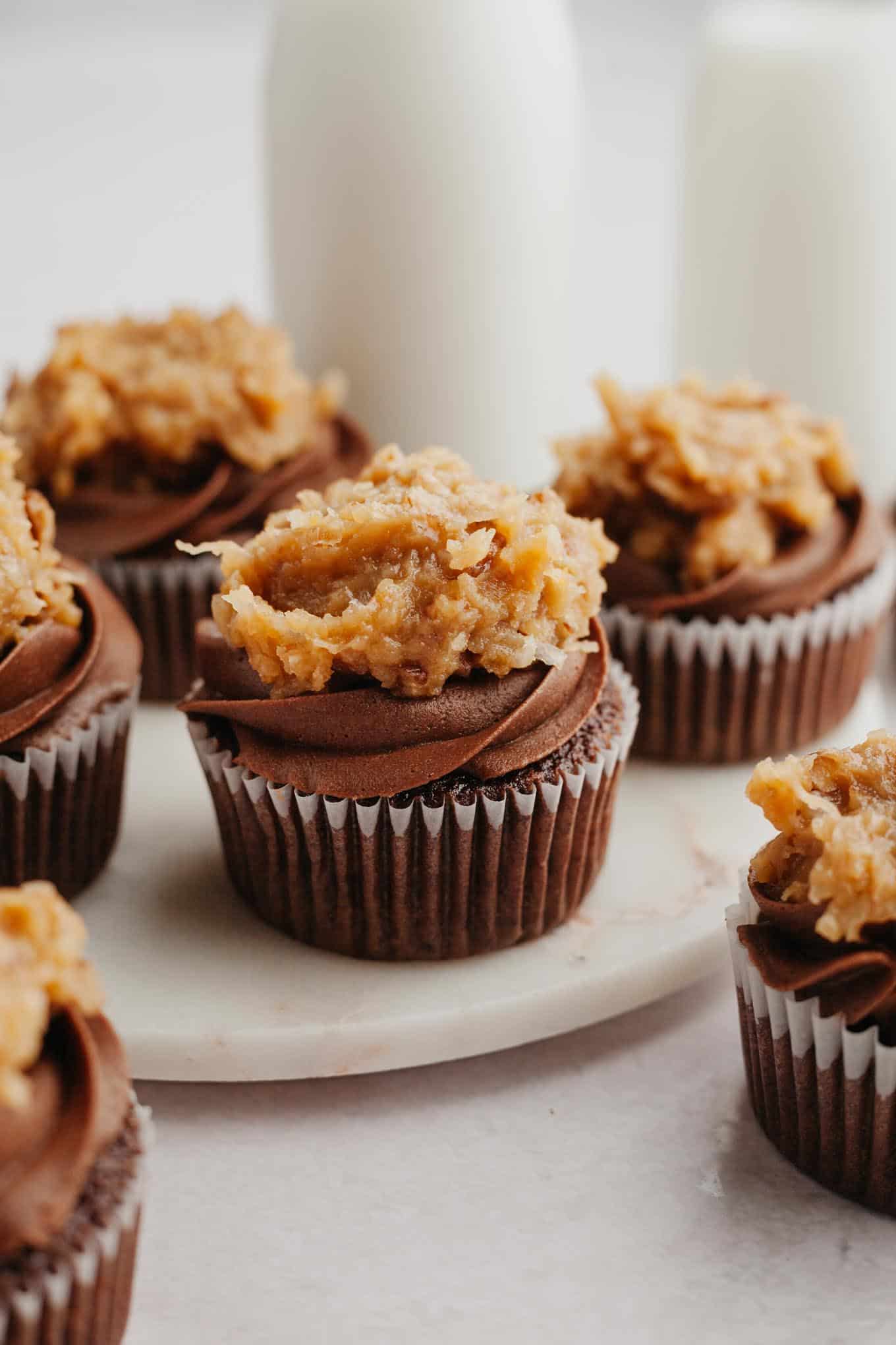 If you don’t want to make cupcakes, I suggest following my German chocolate cake recipe instead. It’s very similar to this recipe, but scaled up to make a layered cake.