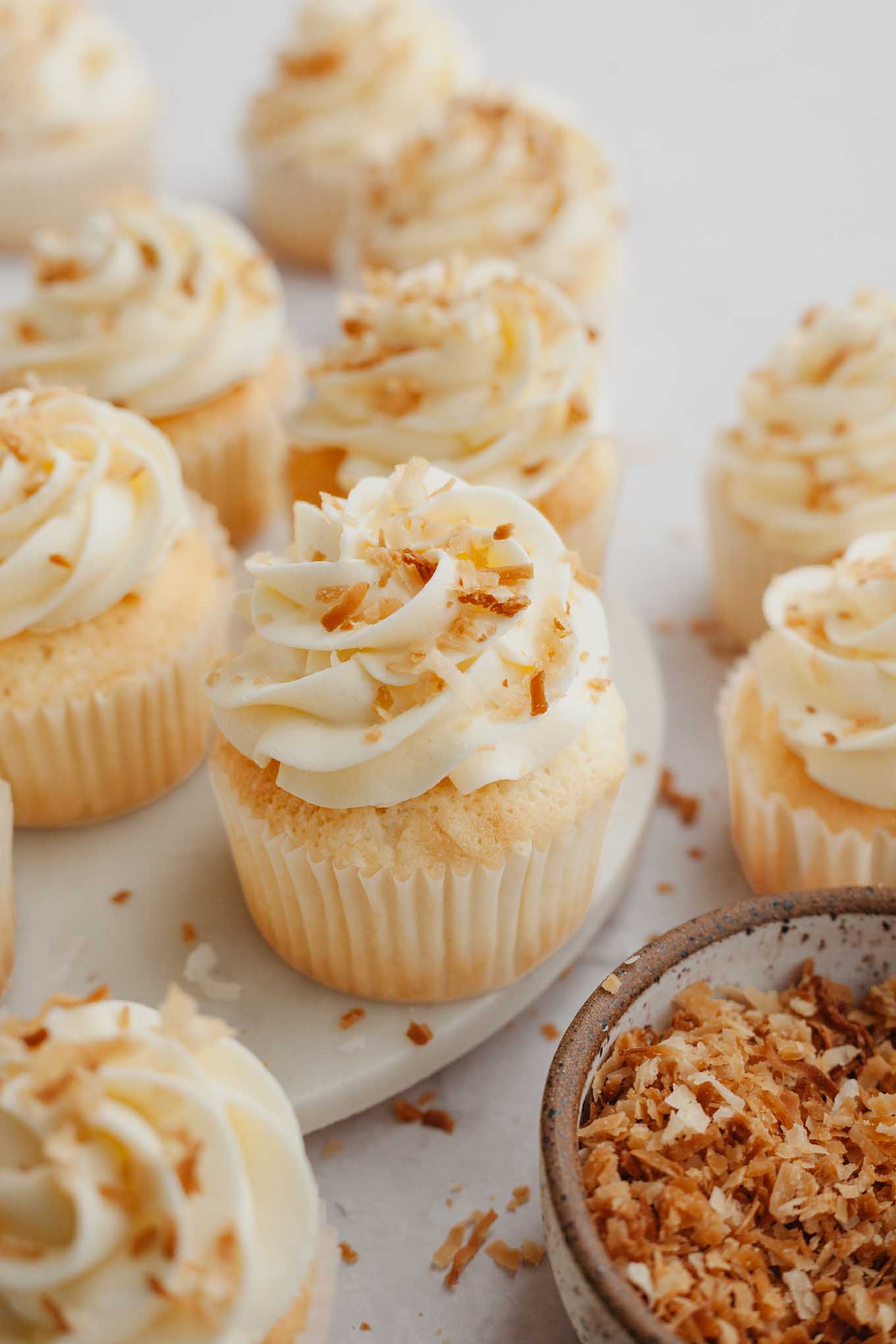 Soft and fluffy coconut cupcakes are flavored with coconut three ways and topped with a creamy coconut buttercream frosting. Top them with toasted coconut for even more texture and flavor!