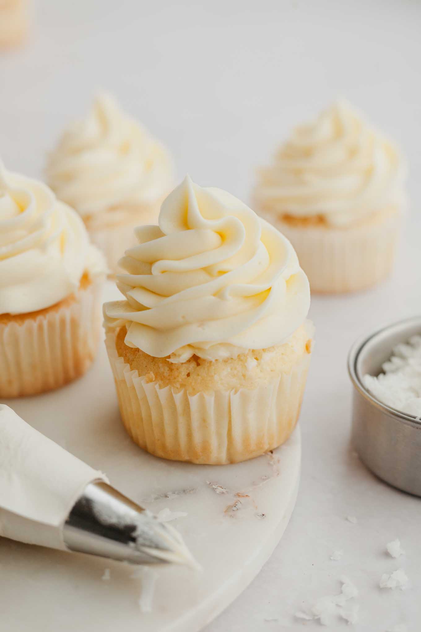 I don’t recommend doing this if you plan to pipe the frosting though because the coconut can get stuck inside of the piping tip. However, you could top your piped frosting with some toasted coconut for more flavor.