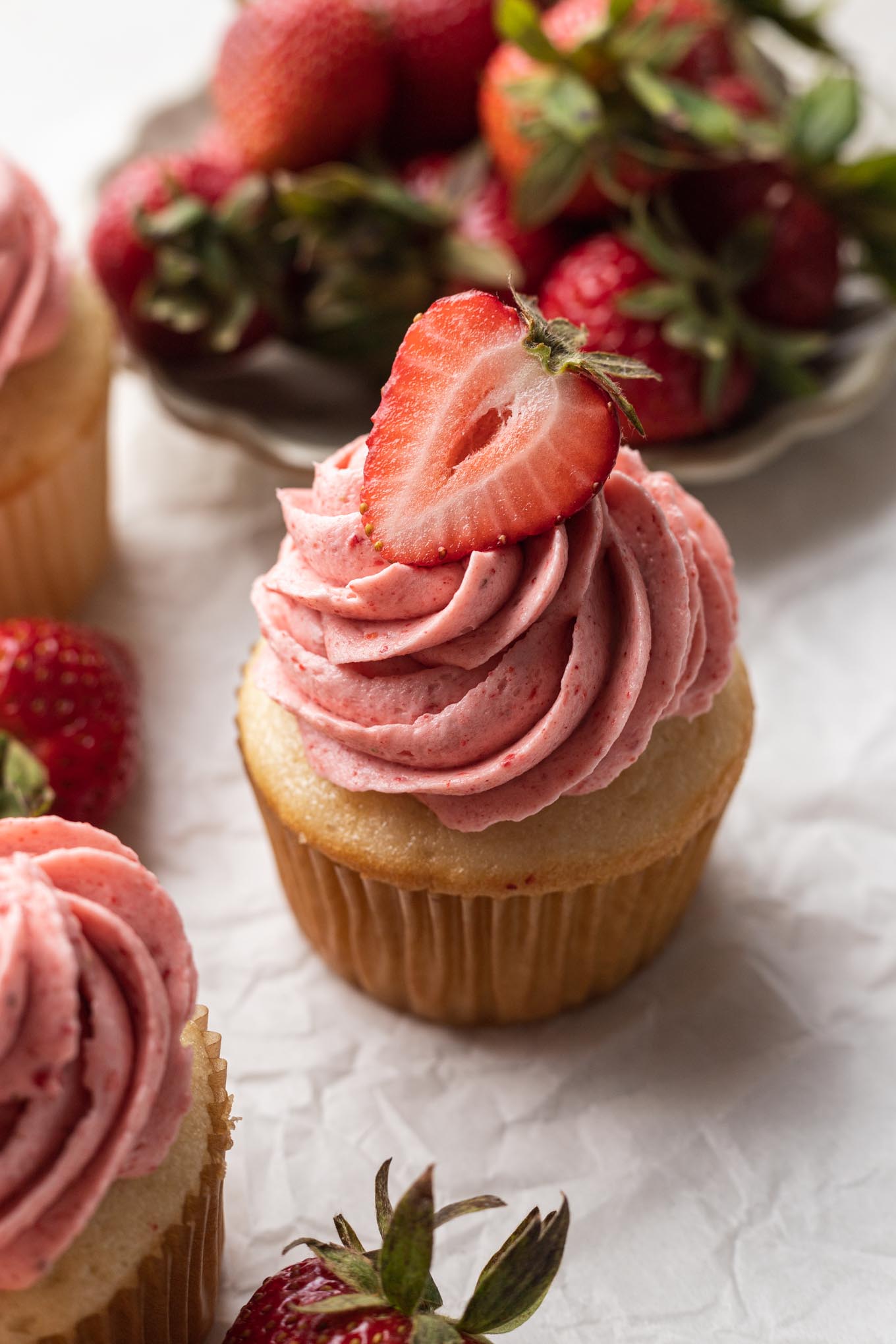 Strawberry buttercream pairs beautifully with a variety of desserts. Almost any cake or cupcake that has a chocolate, vanilla, lemon, or fruity base would likely pair well with the frosting.