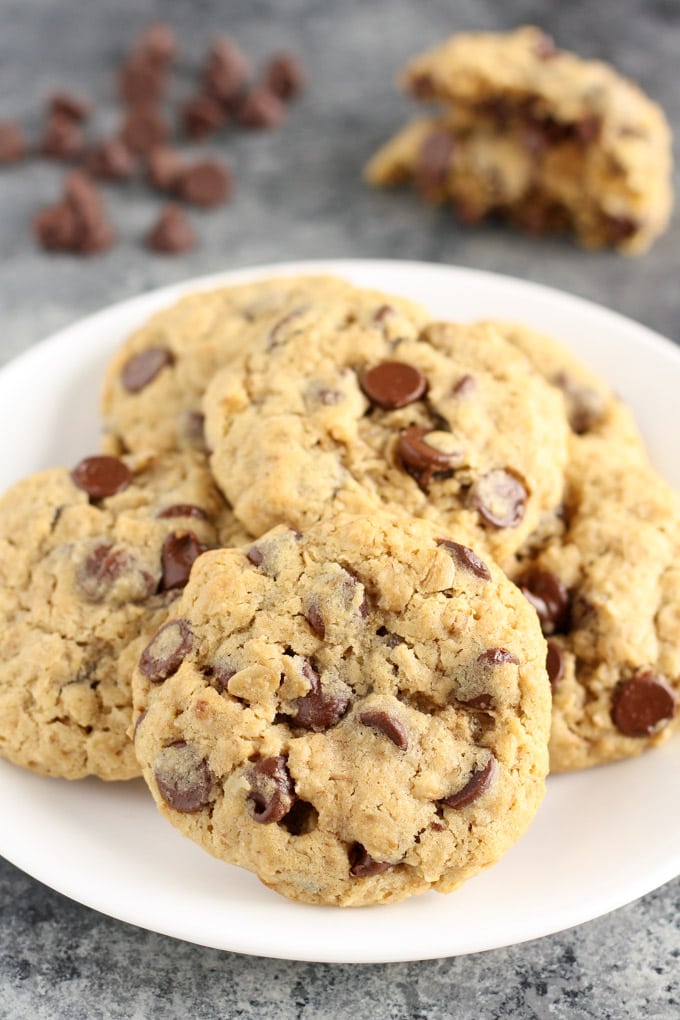 Another thing that I love about these cookies is that you can really make them into whatever you want. If you prefer oatmeal raisin cookies, simply add in a little bit of ground cinnamon and replace the chocolate chips with raisins. You can mix in just about anything you love in oatmeal cookies into this recipe!