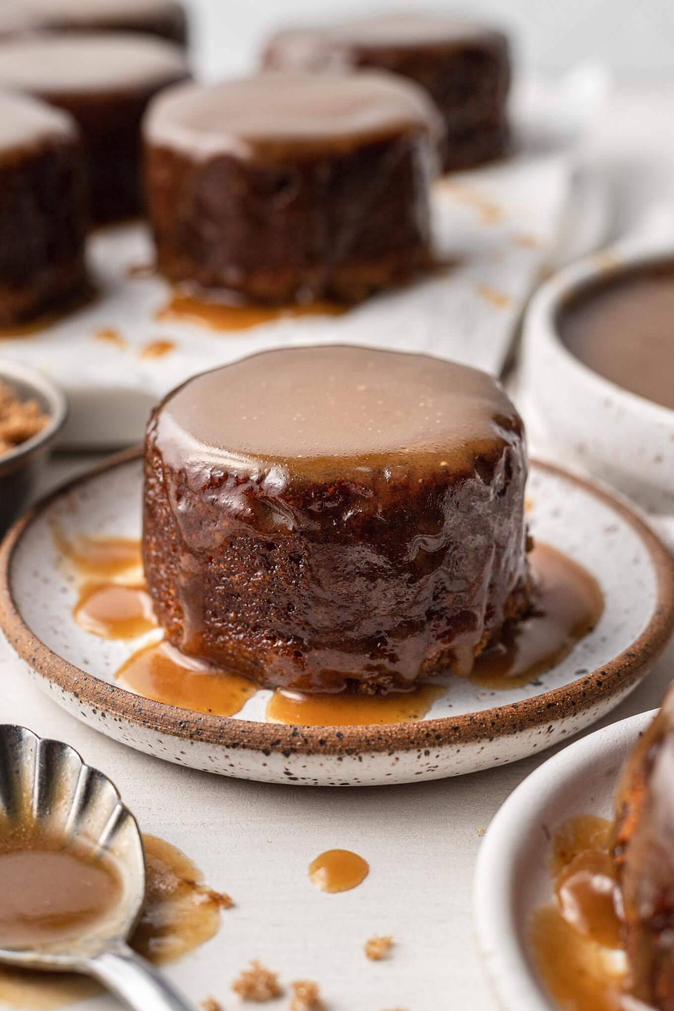 - Flip the cakes onto plates before brushing with the toffee sauce.