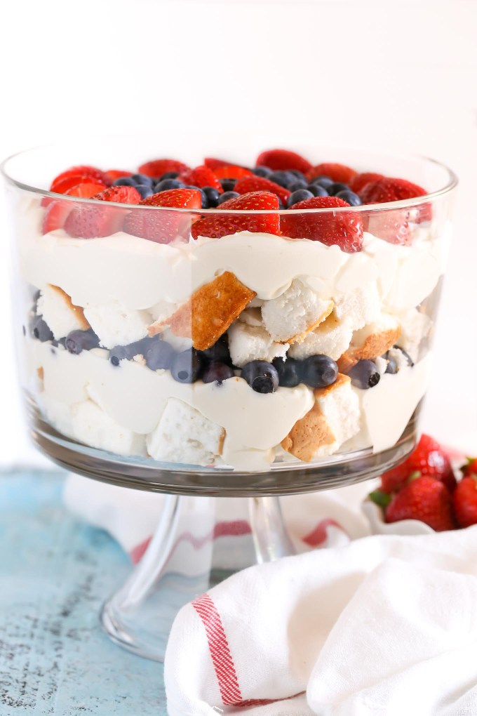 Trifles are the best, especially with angel food cake and no-bake cheesecake! This is so pretty and I would absolutely love this for the 4th! 🙂