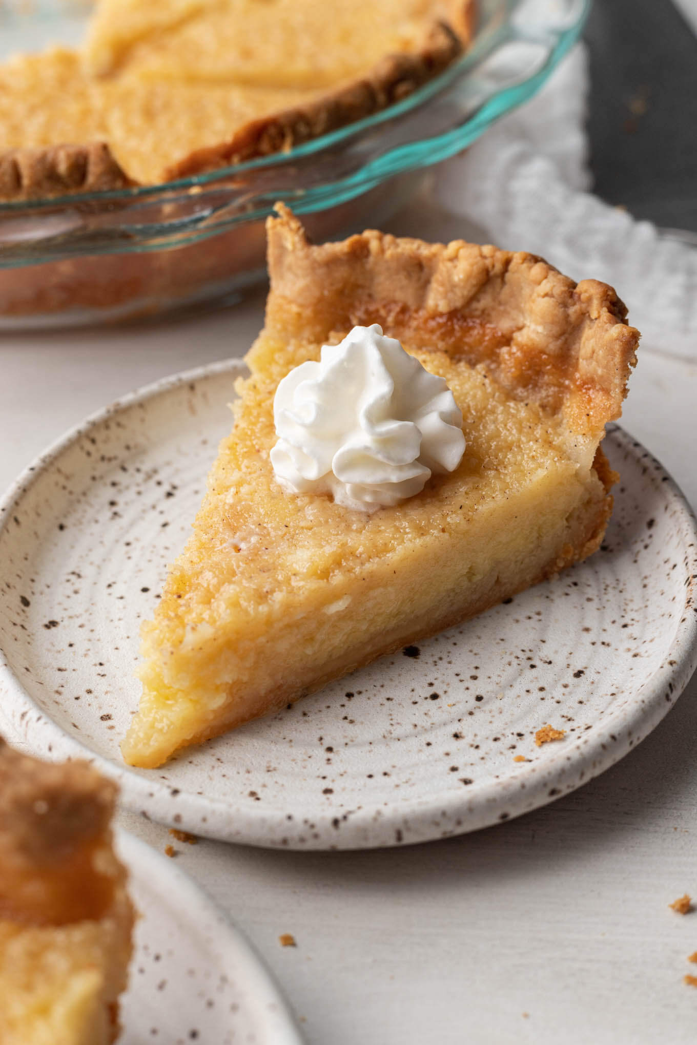 Buttermilk pie isn’t as intensely sweet as chess pie — although it’s still plenty sweet, don’t worry! The sweetness is just balanced by a hint of tanginess thanks to the lemon and buttermilk.