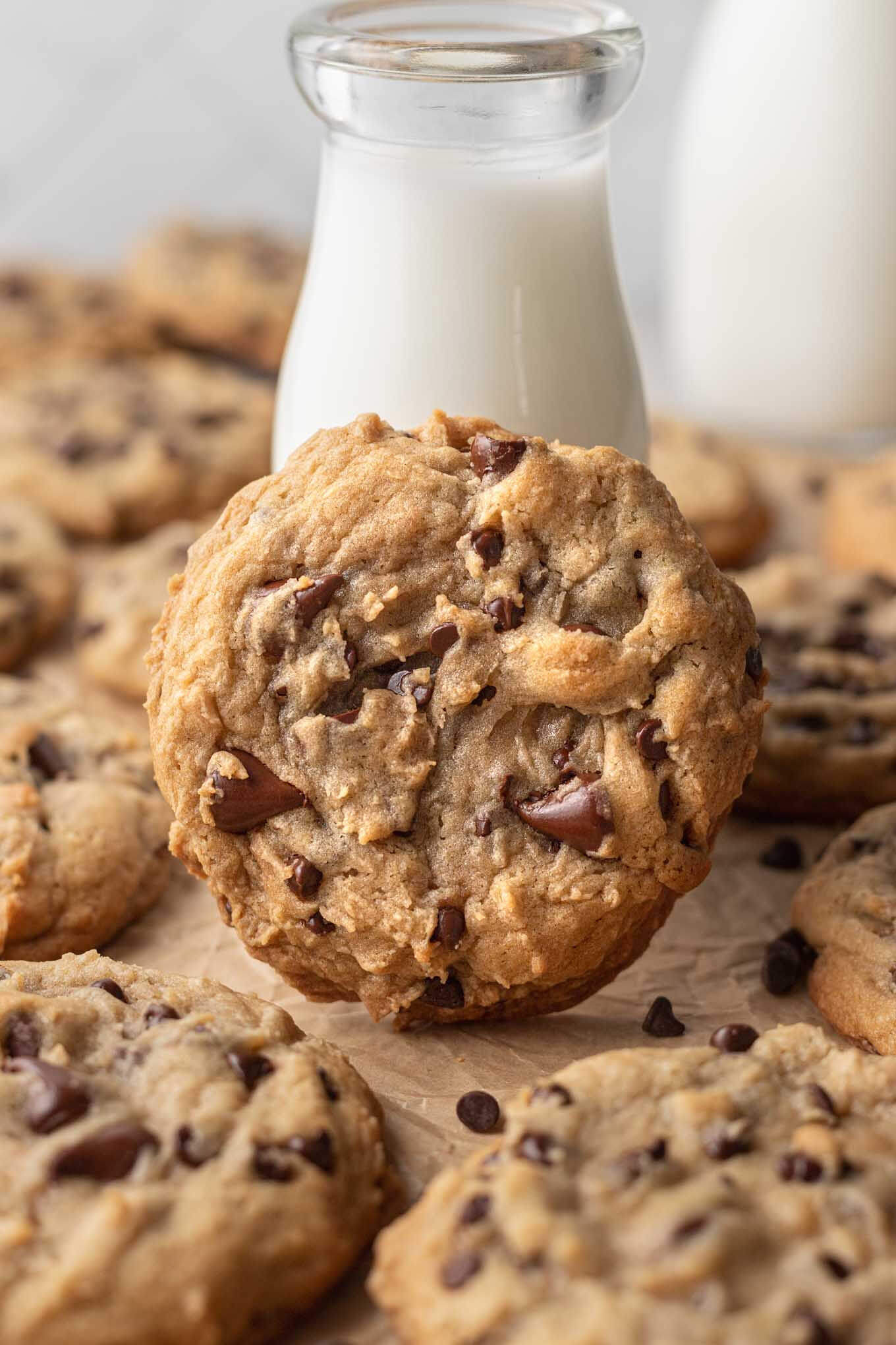 This cookie recipe is based off of my classic chocolate chip cookies, but with a few modifications to get them thicker, softer, and chewier: