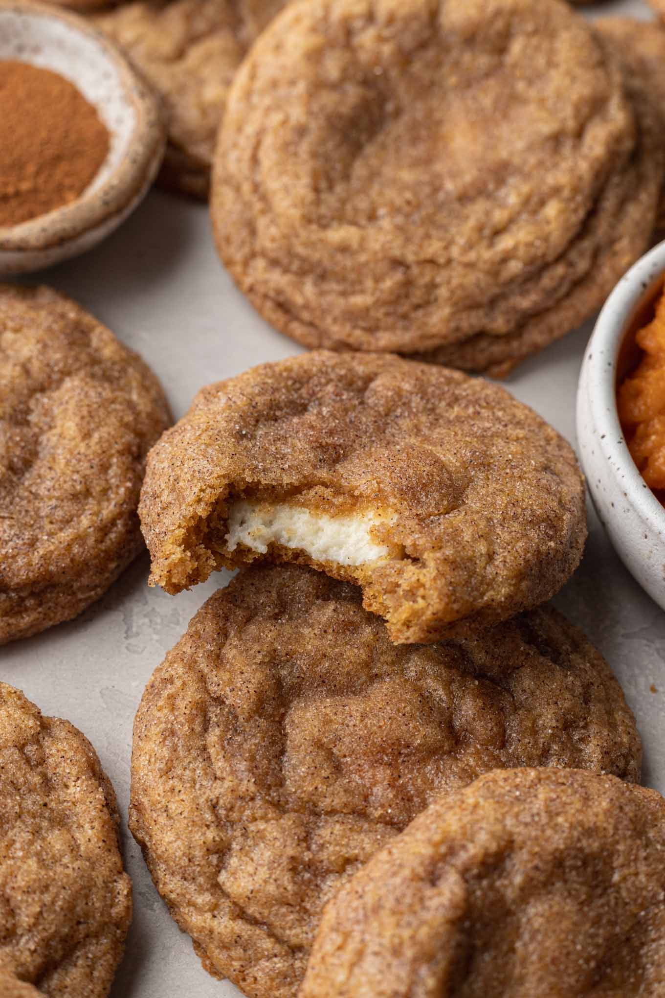 Soft, chewy, and bursting with fall flavor, these cream cheese-filled pumpkin cookies are so easy to make! There are a few extra steps in this recipe since you’ll be stuffing the cookies with a cheesecake mixture, but the overall process is straightforward.