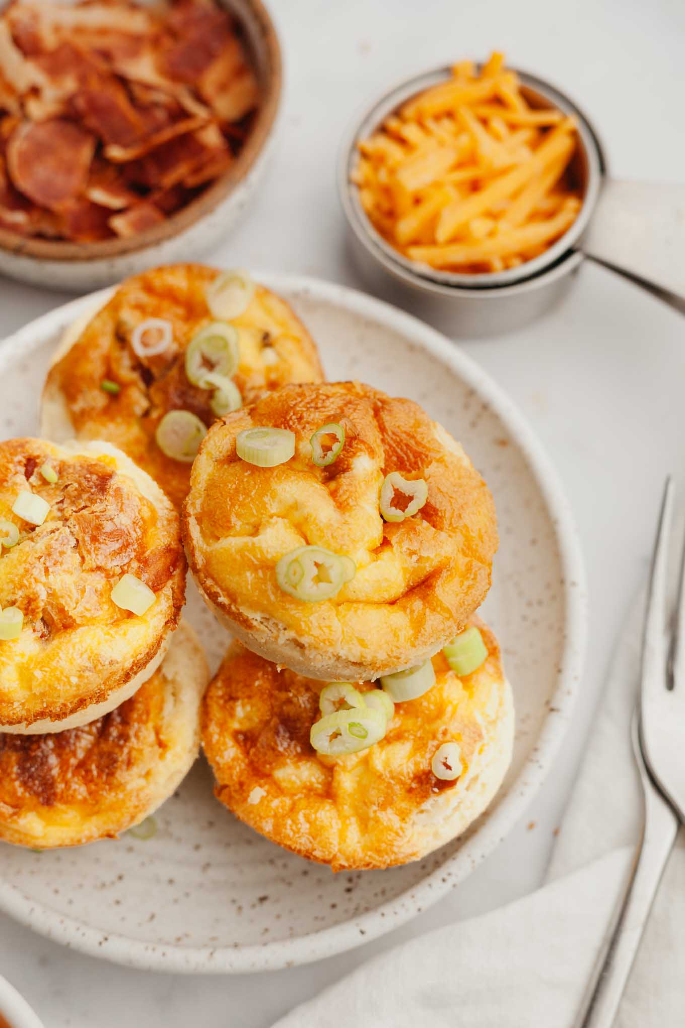 - Veggies: You can add any sautéed vegetable(s) to the egg filling. Be sure to chop the veggies finely since this is a mini quiche recipe!