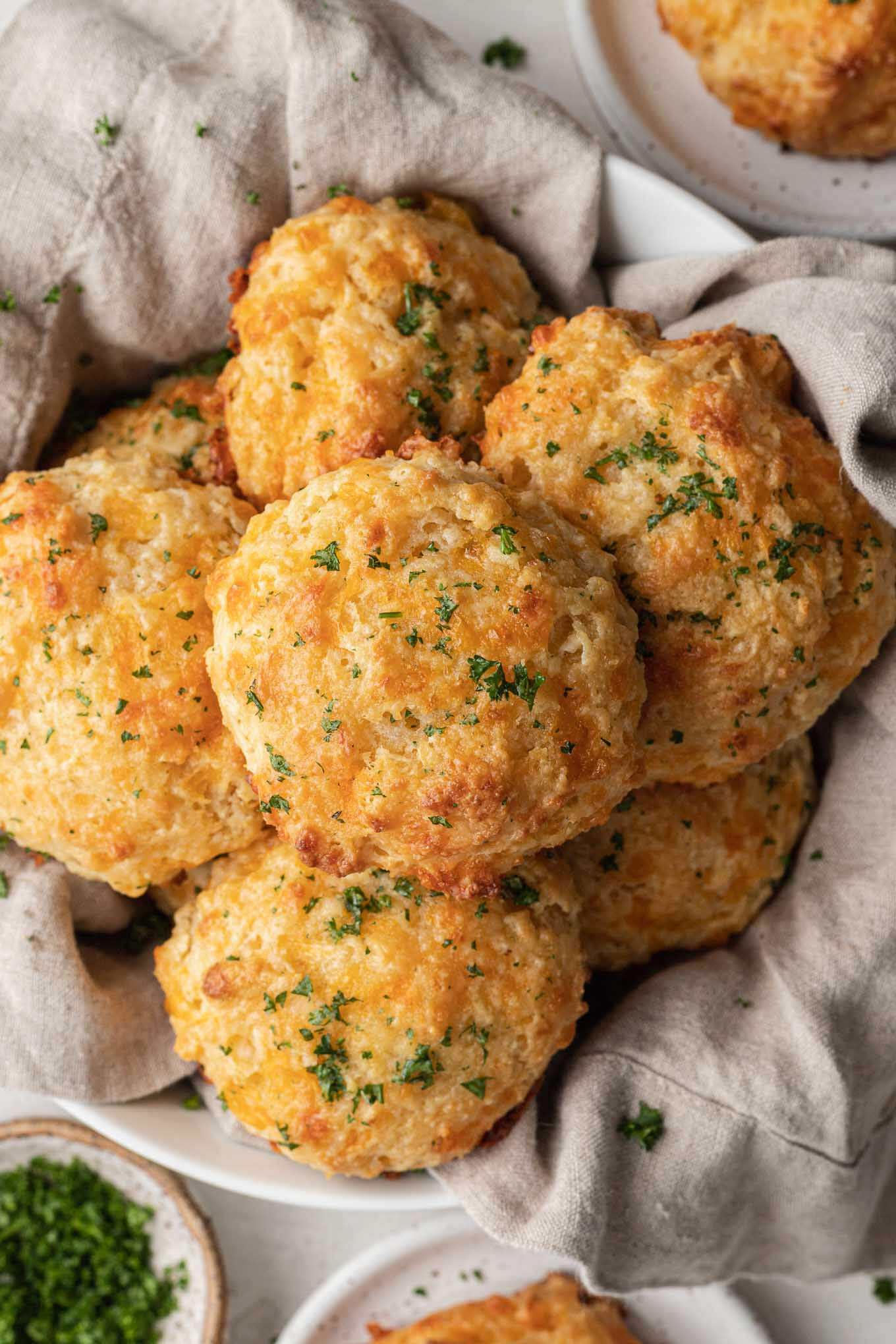 This copycat cheddar bay biscuit recipe delivers perfectly flaky, cheesy biscuits every time! Serve the biscuits alongside your favorite soup or salad all year long.