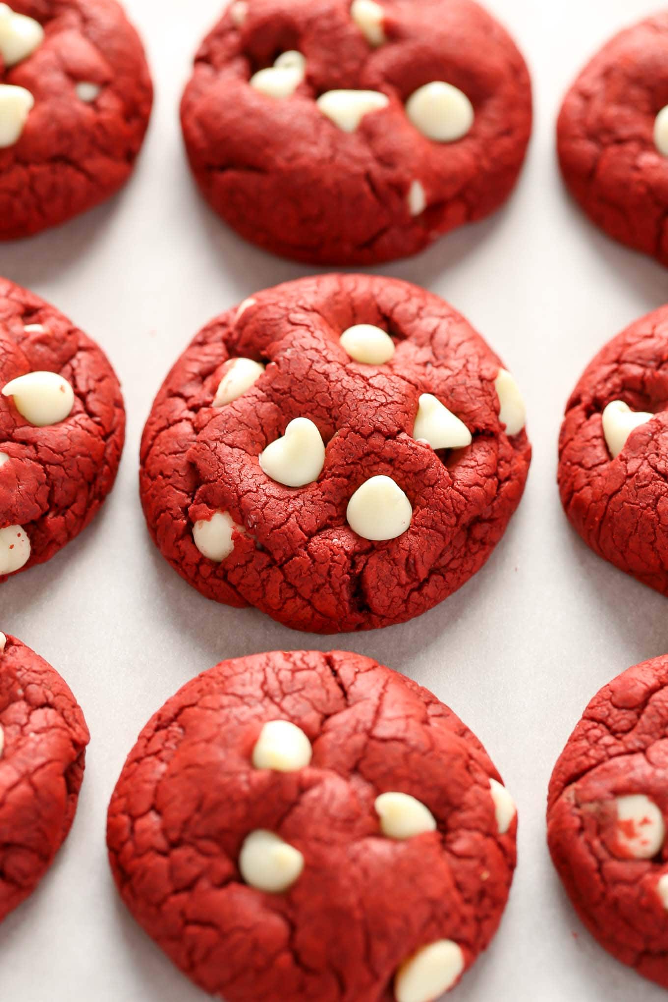 The wonderful thing about this red velvet cookie recipe is that the cookies do not turn out cakey at all, they taste just like a regular cookie.