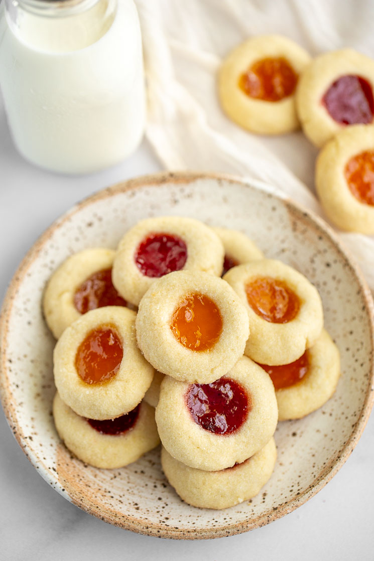 Delicious buttery shortbread cookies filled with strawberry and apricot jam. These Thumbprint Cookies are perfect for the holidays or any occasion!