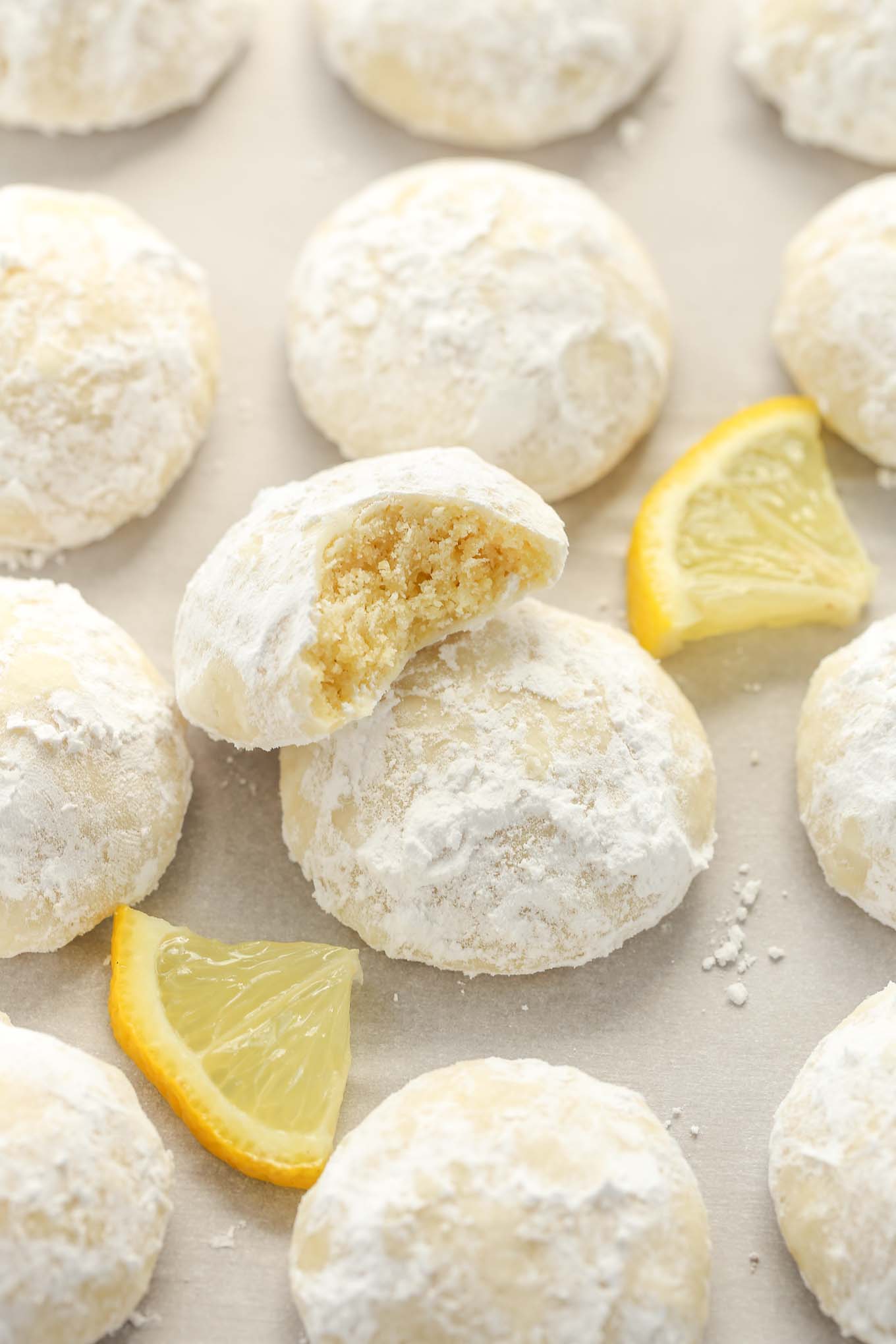 Buttery and tender lemon cookies rolled in powdered sugar. These Lemon Snowball Cookies are so easy to make, incredibly delicious, and don’t require any dough chilling!