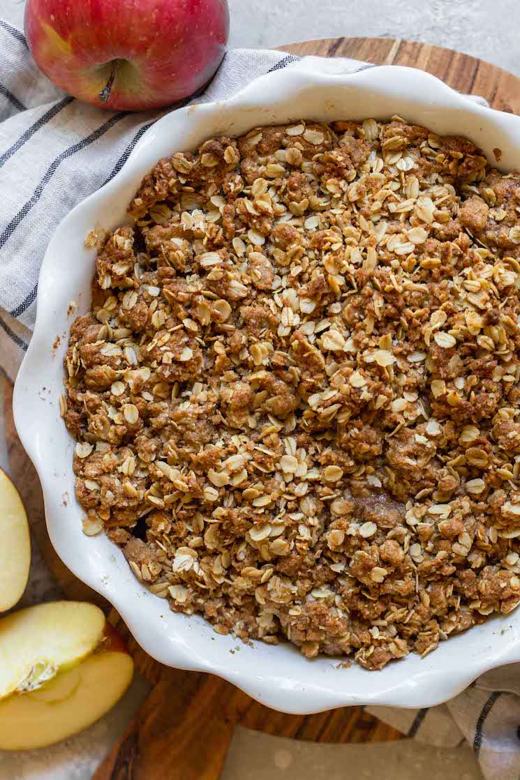 While it’s okay to leave this crisp at room temperature for a day or two, I recommend storing it in the refrigerator so that it stays fresh longer. Once the crisp has cooled completely, cover it tightly, and store it in the refrigerator for up to 3 days.
