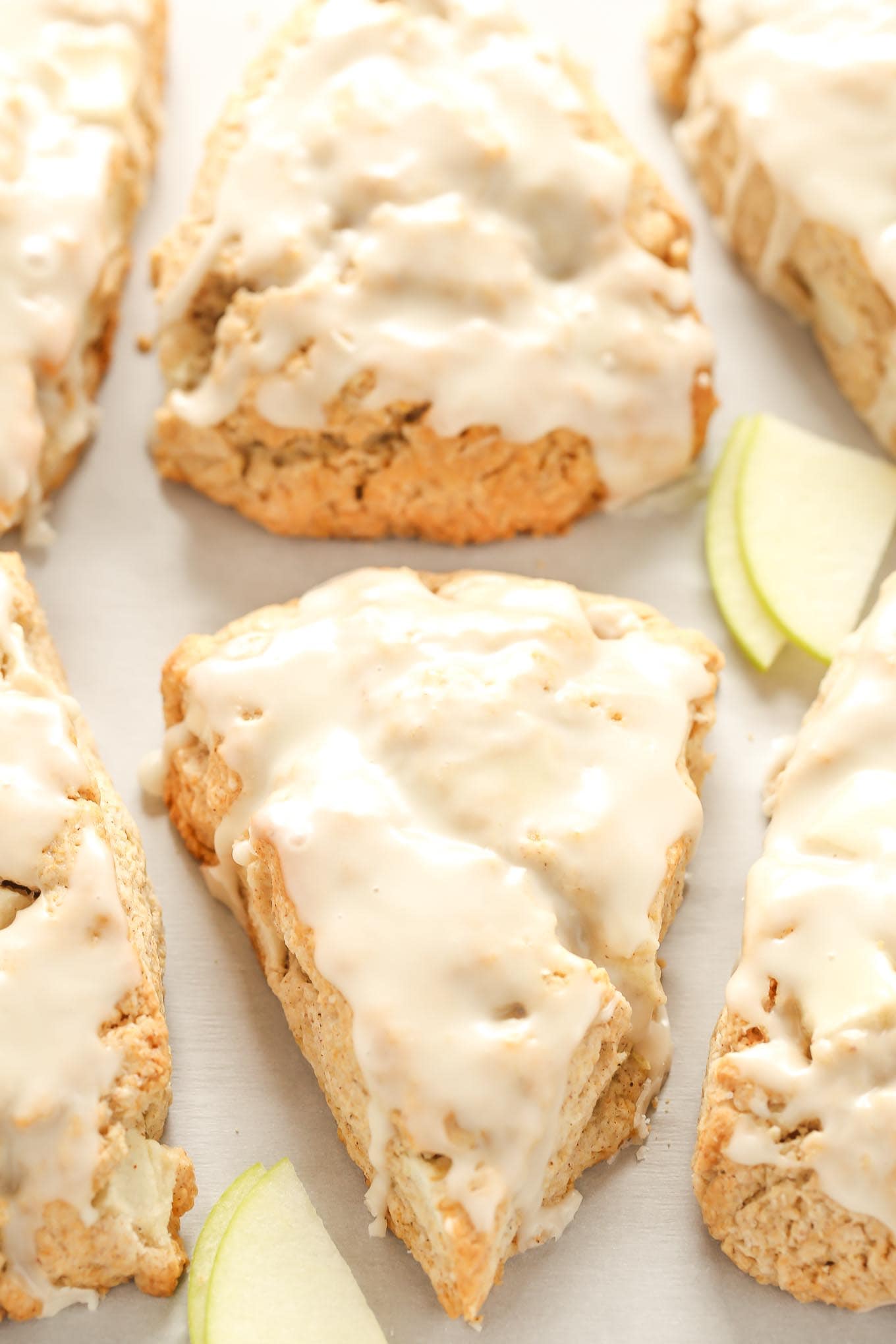 Once the scones are baked you can leave them plain or top them with a simple glaze. I personally love to just use a mixture of powdered sugar, vanilla, and milk on these Apple Cinnamon Scones. You could also add some cinnamon to the glaze for a little extra flavor as well.