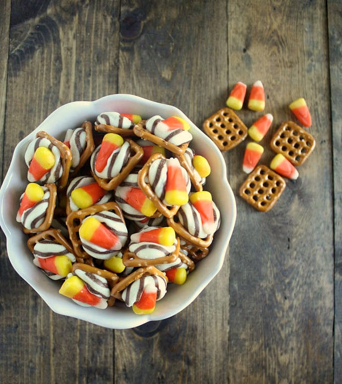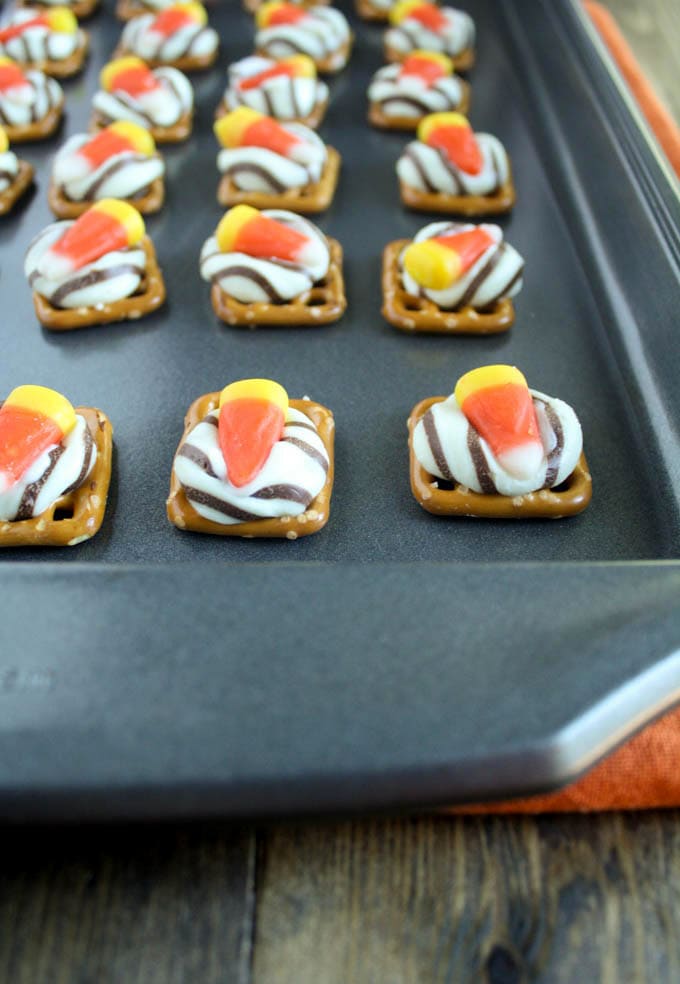 Yah for your kitchen finally almost being finished! I don’t know what I would do without a kitchen! I love chocolate and pretzels together and I bet these are so good with the candy corn! I haven’t had any candy corn yet this season, but I think I’m about to change that!