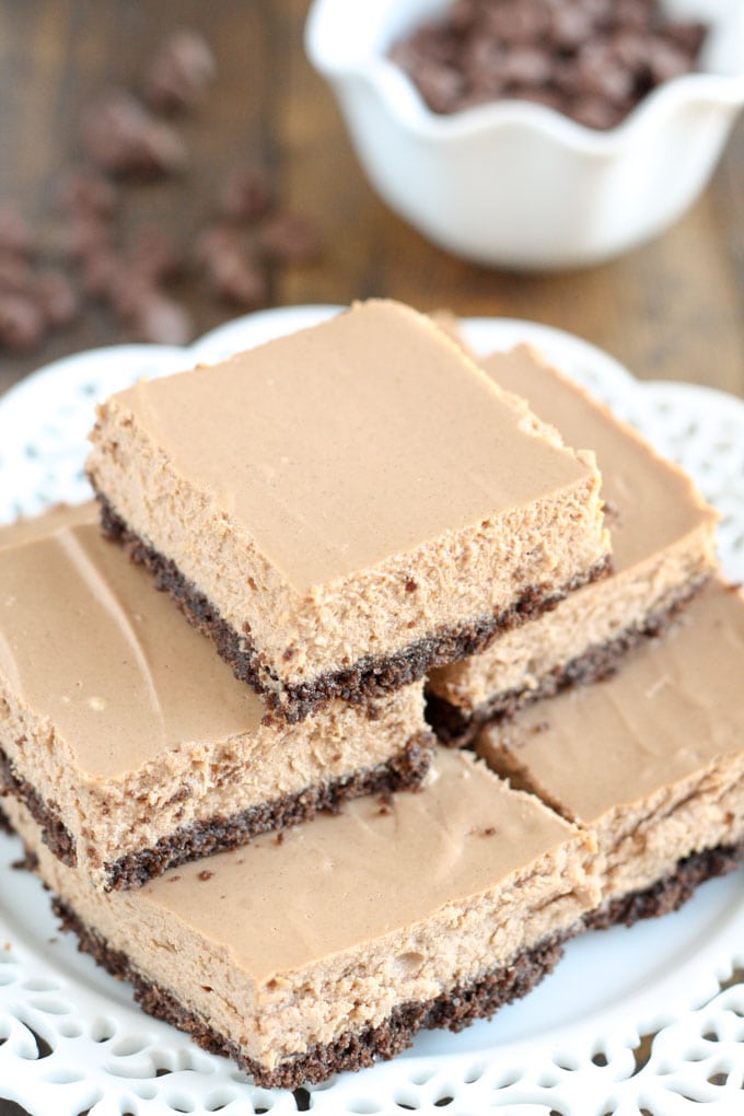 Coffee and chocolate have to happen, but especially together and in CHEESECAKE. These bars are the best!