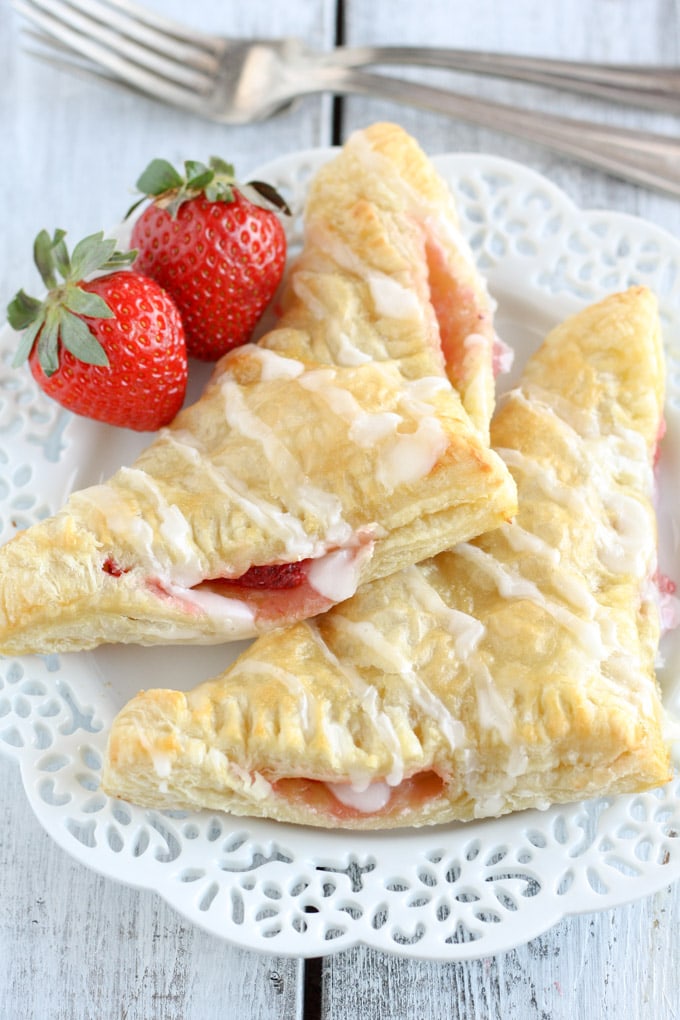 These quick and easy turnovers are made with puff pastry and stuffed with strawberries and cream cheese. These Strawberry Turnovers make a perfect breakfast or dessert!