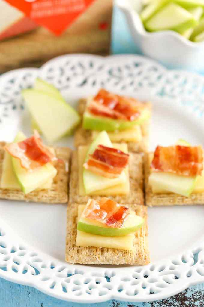 Between the crunchy crackers, the smoky cheese and bacon, tart apple slices, and the sweetness of the honey, these are hard to resist. I really couldn’t get over how delicious these little bites turned out and the fact that they’re easy to make is even better.