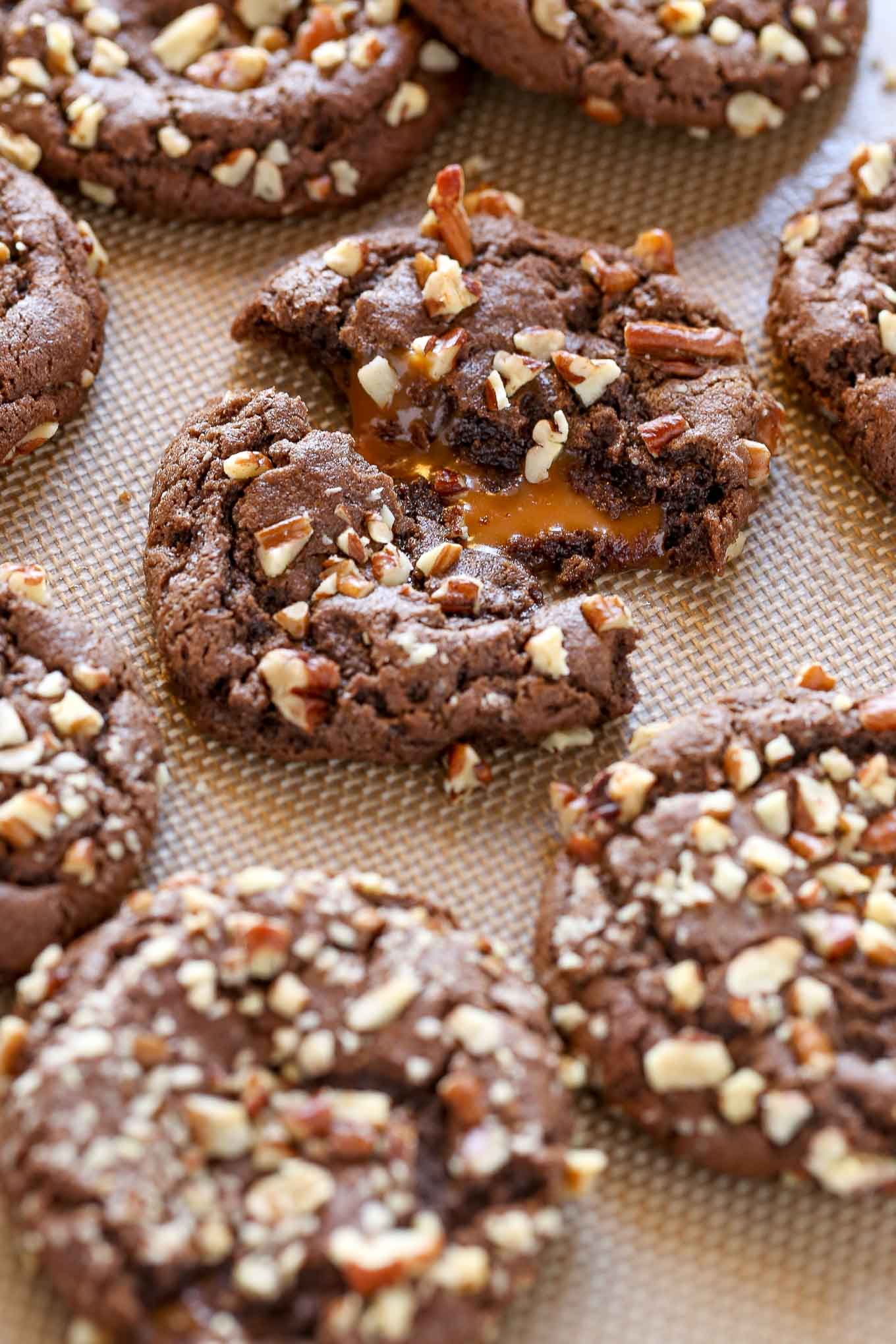 Let me tell you, these Chocolate Turtle Cookies are incredibly hard to resist. Just look at all of that gooey caramel in the center!