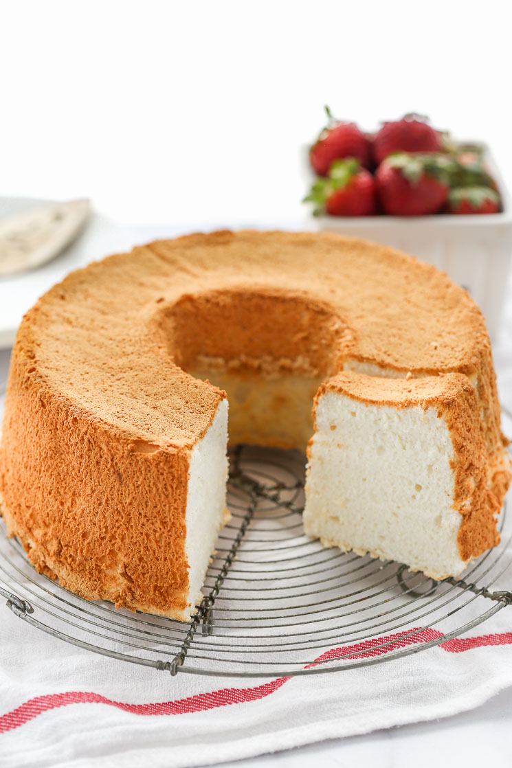 - Do not grease your cake pan, this will prevent the cake from rising to its full height. I prefer to use an angel food cake pan with a removable bottom, this makes it much easier to remove it from the pan!