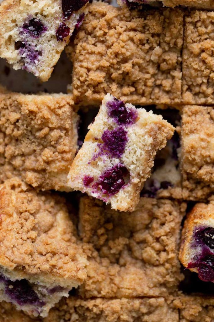 I’ve only made this blueberry streusel coffee cake recipe as written (in a 9×13-inch pan), but I imagine you can halve it. You’d need to bake the cake in an 8-inch square pan instead.