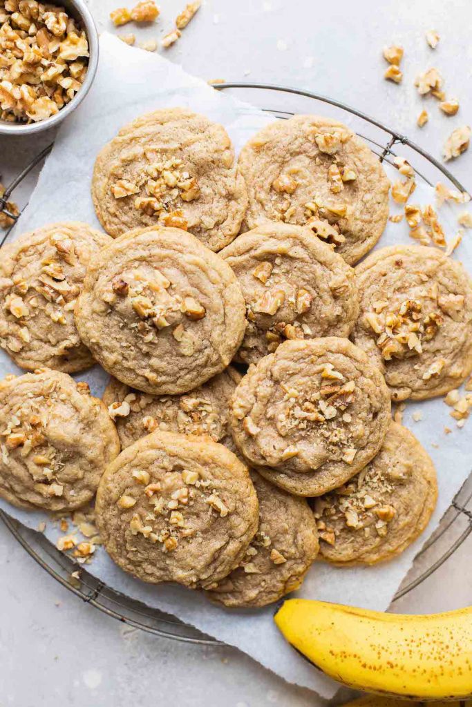 These banana cookies taste like your favorite banana bread, but in cookie form! Feel free to omit the nuts or swap in chocolate chips, if desired.