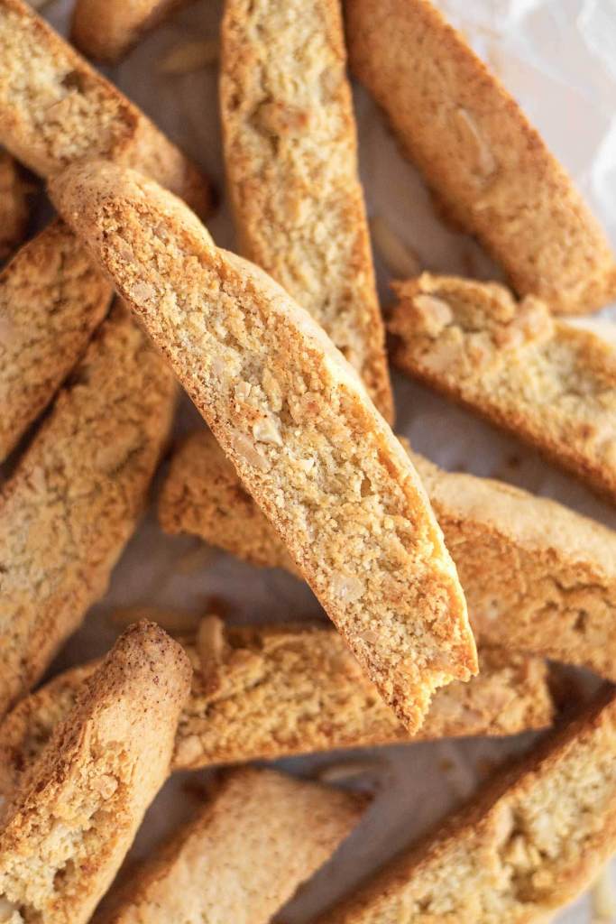 Since they’re a heartier cookie, biscotti are great for gifting around the holidays and also keep well for one to two weeks on your counter!