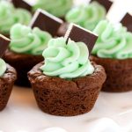 Chocolate cookie cups filled with an easy mint frosting and topped with an andes mint. These Mint Chocolate Cookie Cups are a perfect treat for St. Patrick's Day or mint chocolate lovers!
