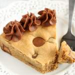 An easy peanut butter cookie cake filled with peanut butter cups and topped with chocolate frosting. This Peanut Butter Cup Cookie Cake is the ultimate dessert!