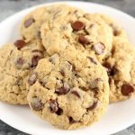 Add in the flour, baking soda, and salt and mix until everything is fully combined. Then mix in the rolled oats and semi sweet chocolate chips until fully incorporated into the dough.