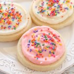 For these cookies, I rolled the sugar cookie dough to 3/8-inch thick and used a 3-inch cookie cutter to cut out 15 to 16 cookies. Baking time was 12 to 13 minutes at 350°F.Storage instructions: Store frosted cookies in airtight container in the refrigerator for up to 3 days.Freezing Instructions: Unfrosted cookies will freeze well for up to 3 months, thaw to room temperature before frosting. The frosting will freeze well for up to 3 months too, thaw overnight in the refrigerator, and bring to room temperature before using it.Shortening: I prefer to use Crisco vegetable shortening for this recipe.